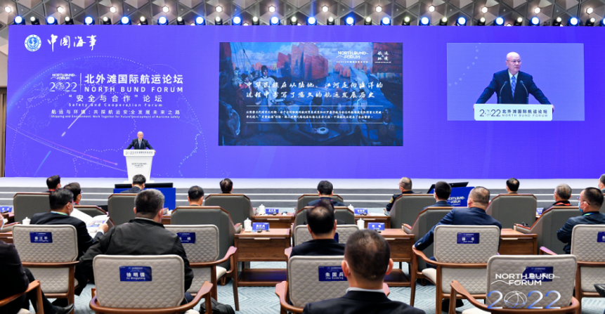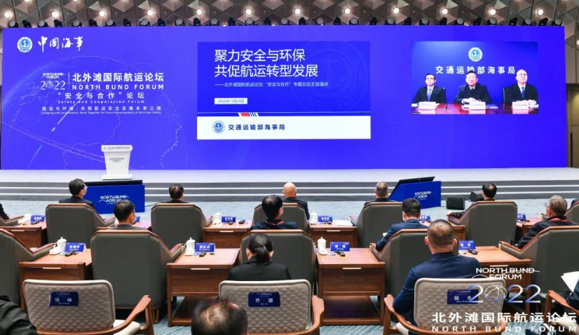 11月22日至24日,由交通运输部和上海市人民政府共同举办的“2022北外滩国际航运论坛”在上海举行,其中“安全与合作”专题论坛于23日上午由交通运输部海事局承办,上海海事局和中谷海运集团有限公司支持。来自政府间和非政府间国际组织、国内外海事主管机关,交通运输行业管理部门、相关国家驻华使领馆、上海市相关政府部门,航运业相关企业、科研院所、行业协会等130余名中外嘉宾代表,以线上或线下方式围绕“航运与环境:共探航运安全发展未来之路”主题,共同研讨、分享经验成果,助推全球海事治理。论坛还发布了船舶能耗数据和碳强度管理相关成果。